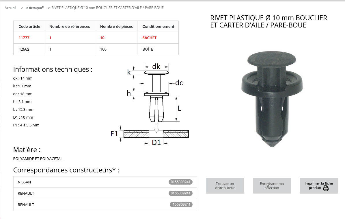 quantité de AGRAFE PLASTIQUE (sachet de 10pcs)