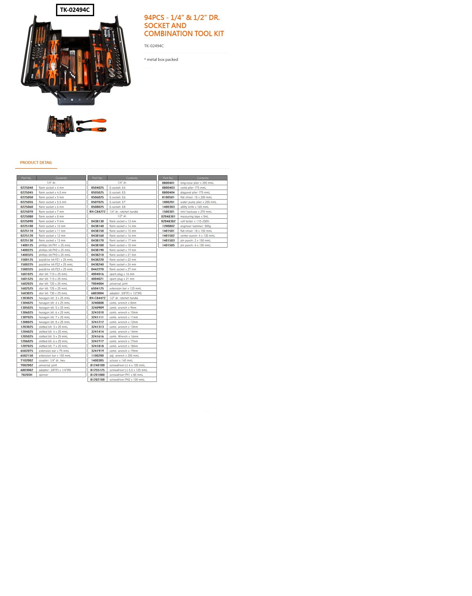 CAISSE A OUTILS METAL 94 PCS
