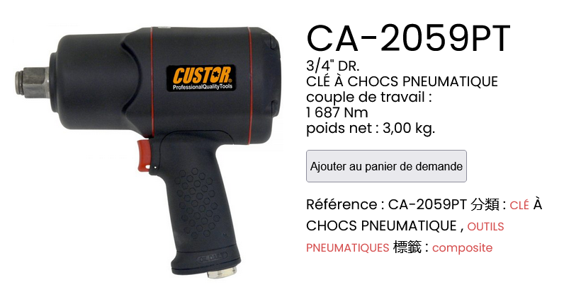 quantité de CLE A CHOC 3/4 PNEUMATIQUE COMPOSITE