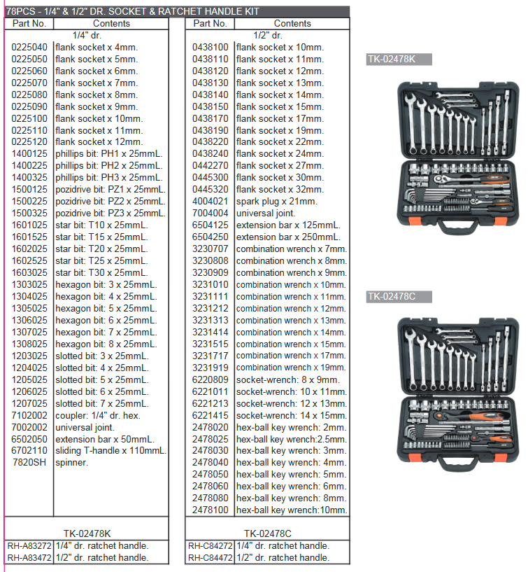 COFFRET COMPLET DOUILLES & CLIQUETS 1/4″ & 1/2″ (78pcs)