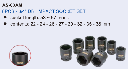 COFFRET DE DOUILLES 3/4″ PL POUR CLE A CHOC (8pcs)