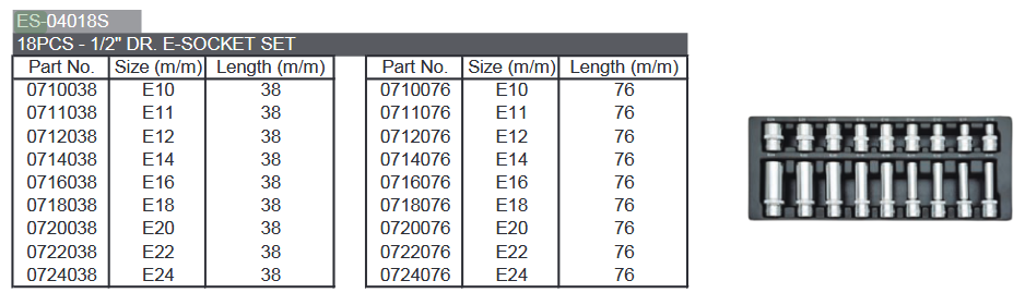 COFFRET DE DOUILLES TORX FEMELLES 1/2″ (18pcs)