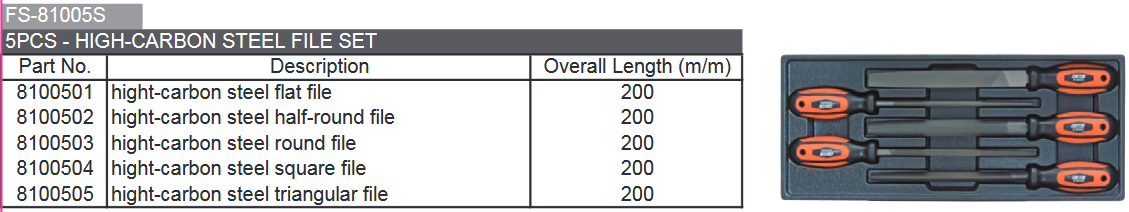 COFFRET DE LIMES (Long.200mm x 5pcs)
