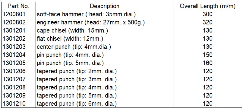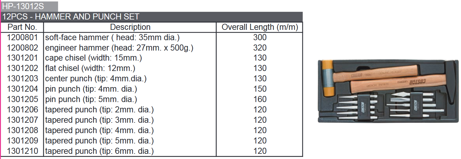 COFFRET DE MARTEAUX + BURINS + CHASSE GOUPILLES (12pcs)