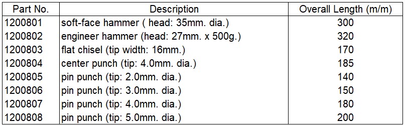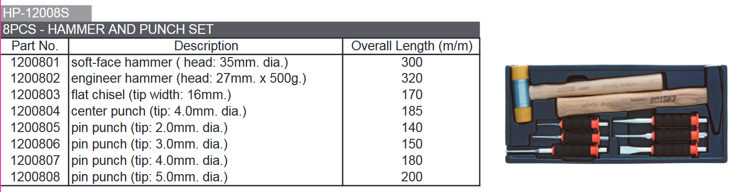 COFFRET DE MARTEAUX+POINTEAUX+BURINS (8pcs)
