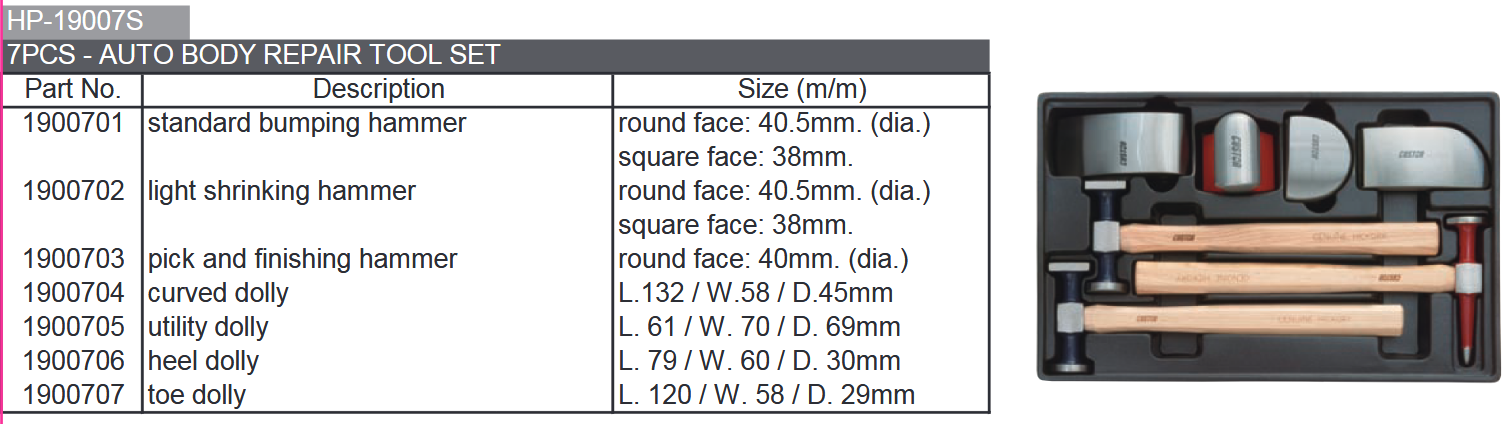 COFFRET DE TAS + MARTEAU CARROSSERIE (7pcs)