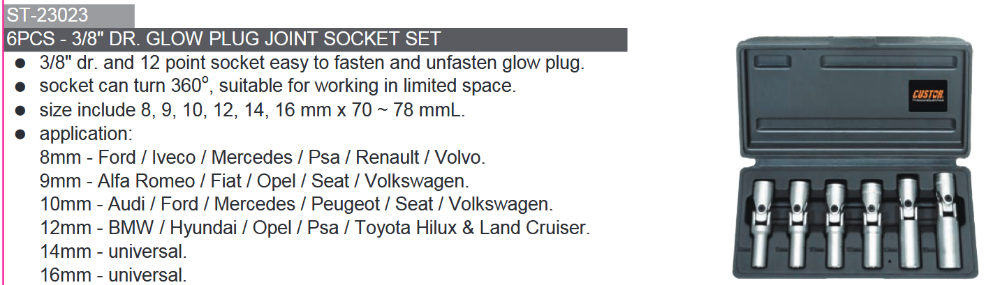 COFFRET DOUILLES 3/8″ POUR BOUGIES PRECHAUFFAGE (6pcs)