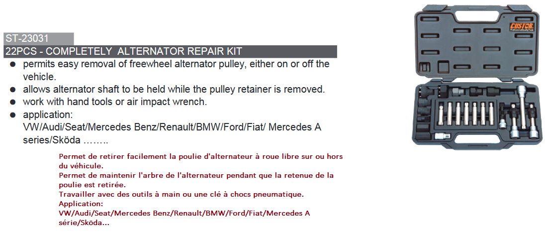 COFFRET EXTRACTEUR POULIE D’ALTERNATEUR (22pcs)