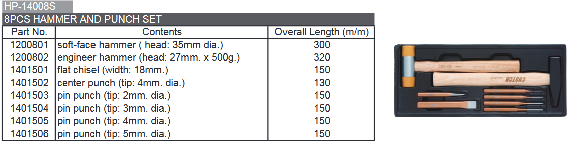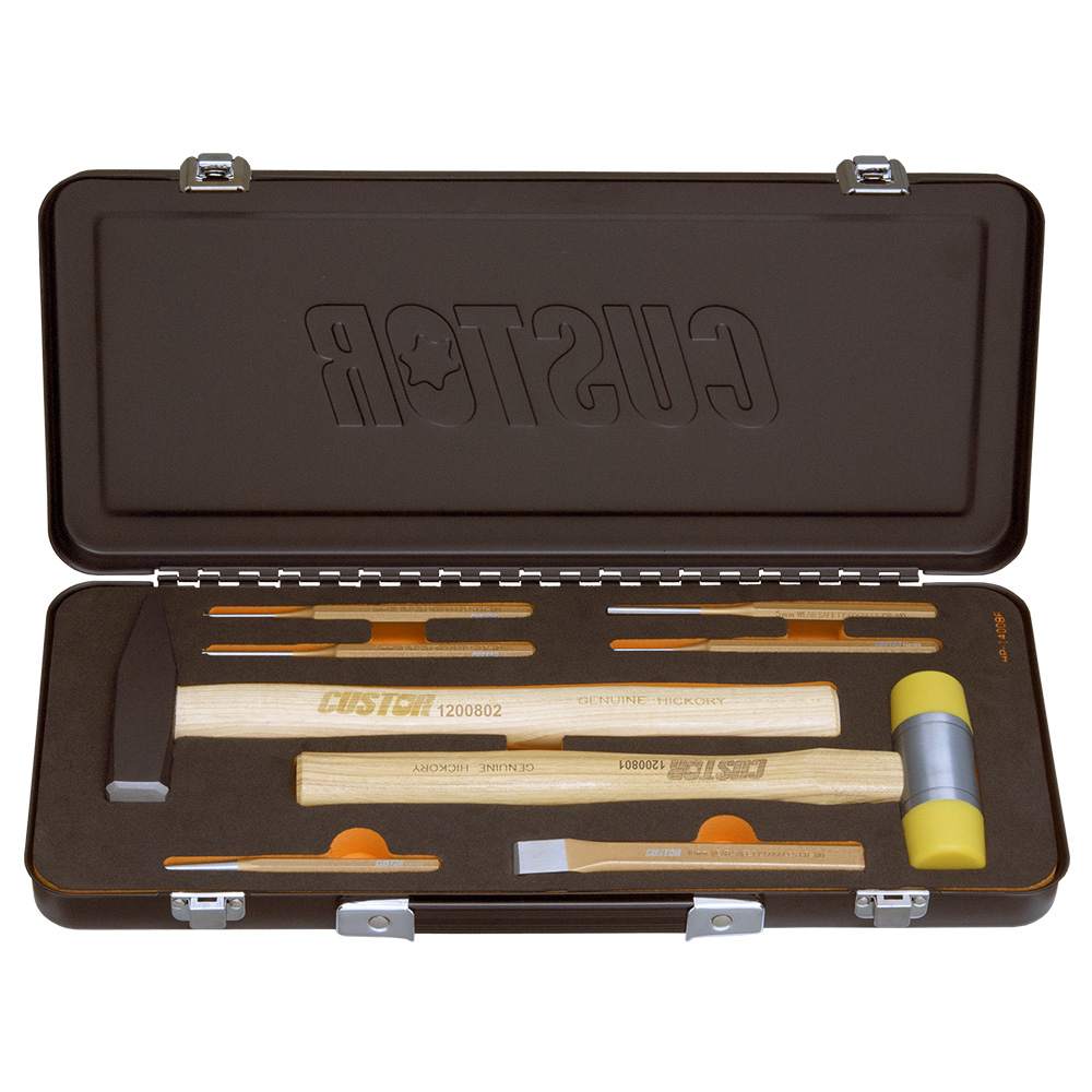 COFFRET METAL MARTEAUX+POINTEAU+BURIN (8pcs)