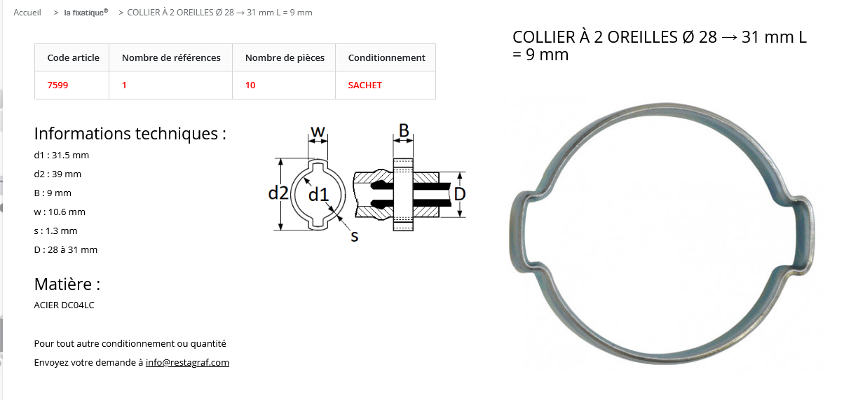 COLLIERS DE SERRAGE SANS VIS largeur 9/ Ø de 28 à 31(sachet de 10)