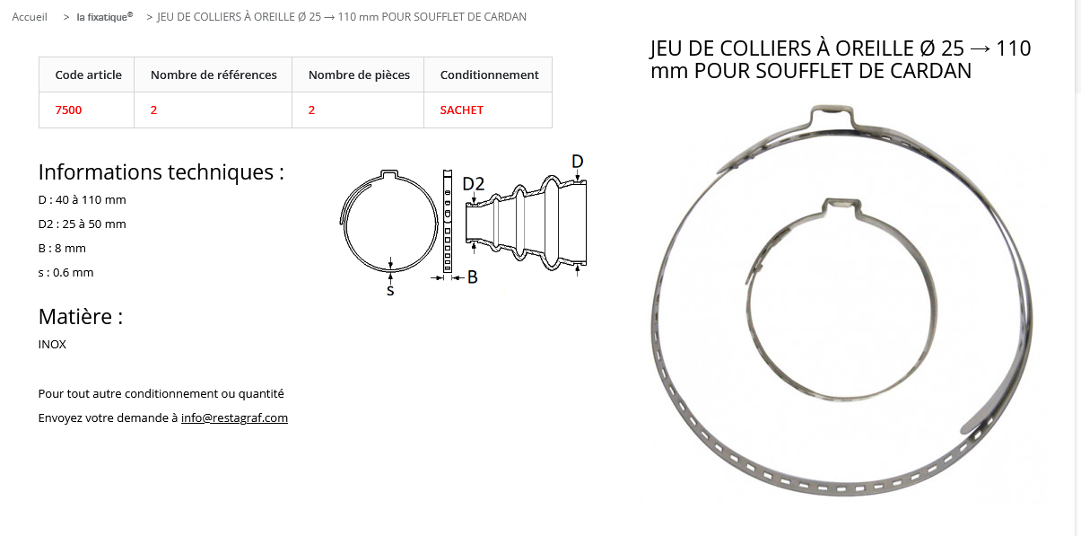 COLLIERS DE SOUFFLET CARDANS larg 8 SERRAGE 25/50 40/110(sachet de 2)