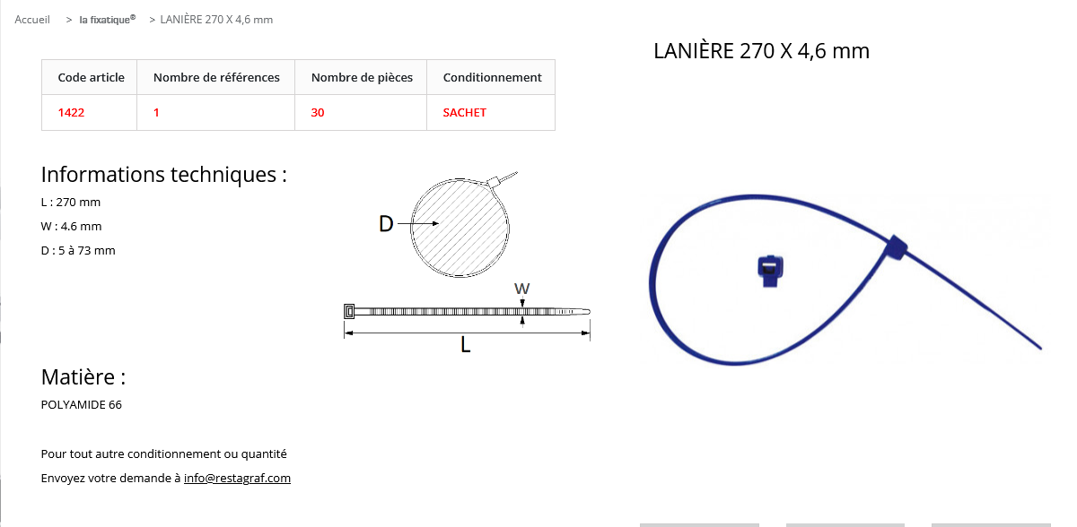 COLLIERS RILSAN BLEUS 270X4,6MM (sachet de 30 pcs)