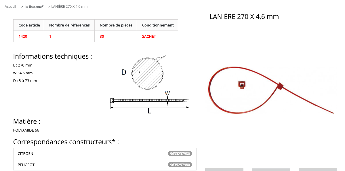 COLLIERS RILSAN ROUGES 270X4,6MM (sachet de 30 pcs)