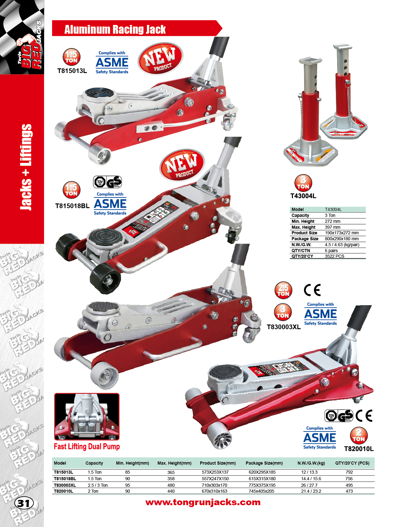CRIC ROULEUR 1.5T ALU DOUBLE POMPE (PROFILE BAS 85mm-370mm)