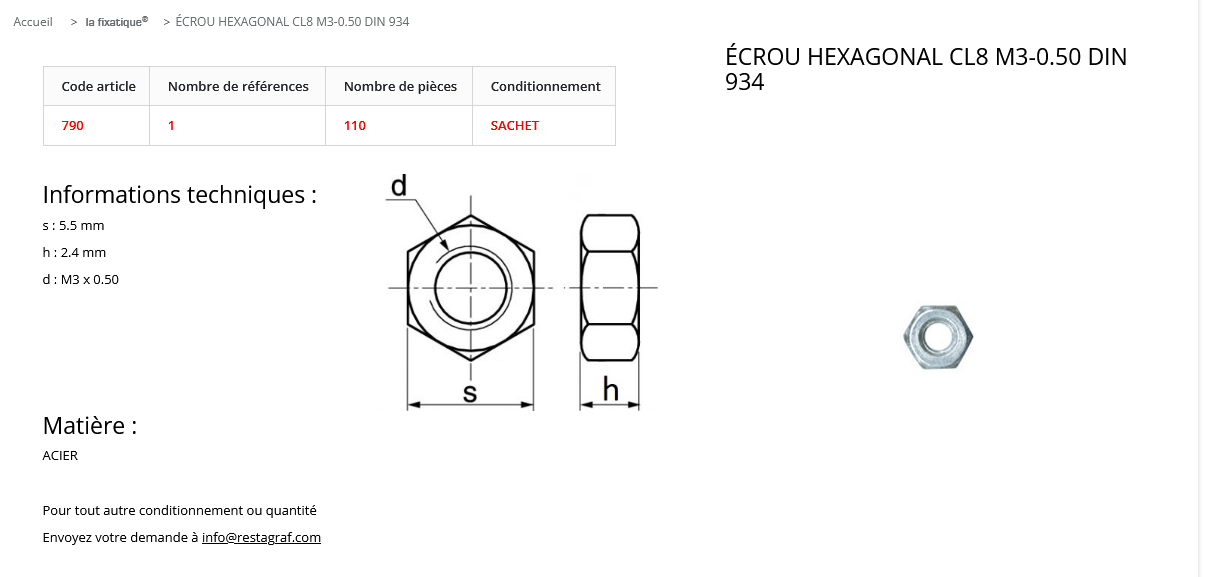 quantité de ECROU 6 PANS 3X0,50 (sachet de 110 pcs) [30]
