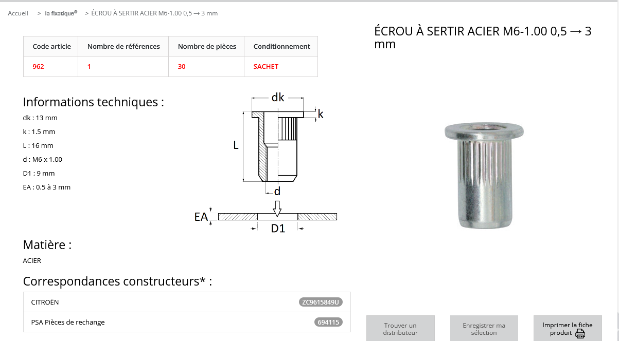 ECROU A SERTIR D6 (sachet de 30 pcs)