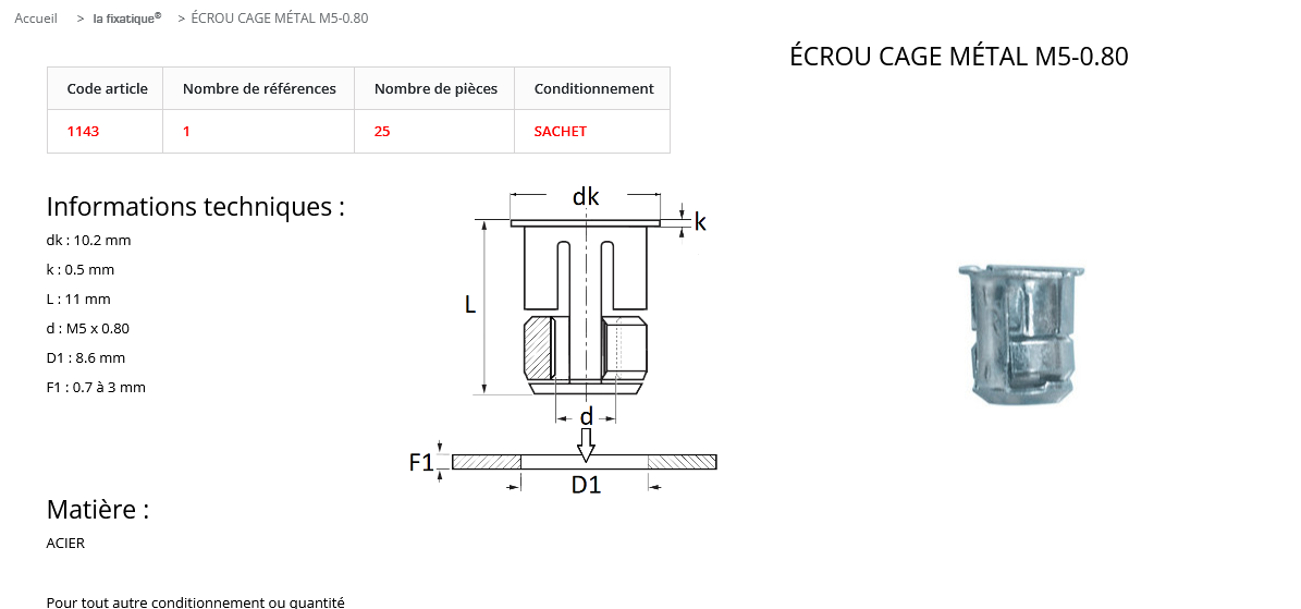 quantité de ECROU CAGE ROND D5 (sachet de 25 pcs)