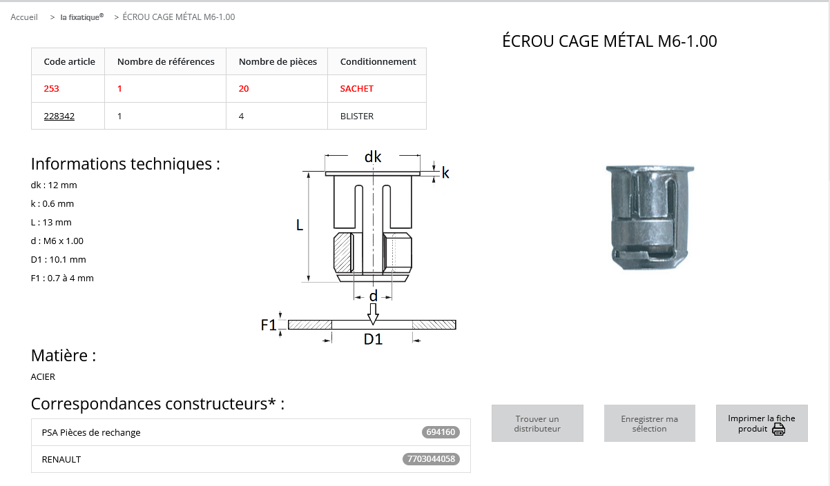 quantité de ECROU CAGE ROND (D6) (sachet de 20 pcs)