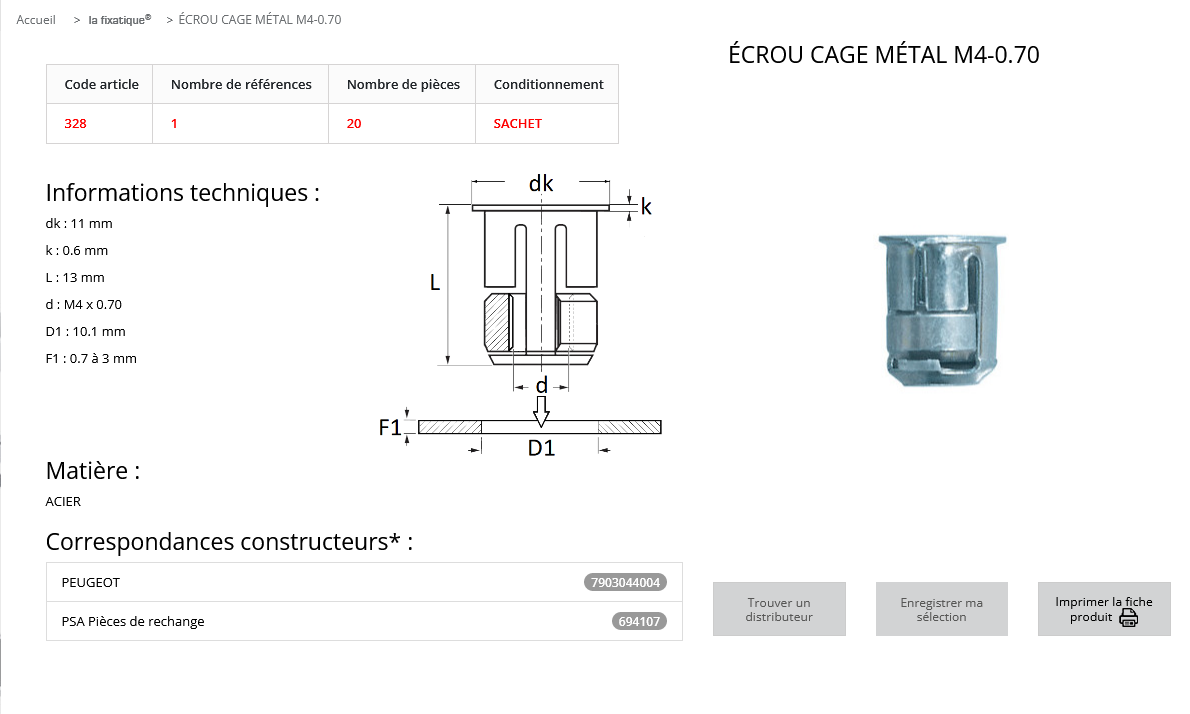 quantité de ECROU CAGE RONG (D4) (sachet de 20 pcs)