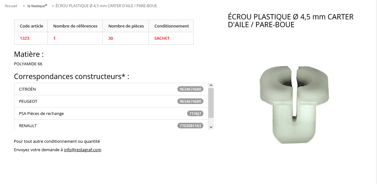 quantité de ECROU PLASTIQUE (sachet de 30 pcs)