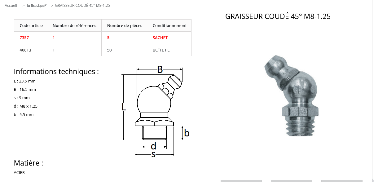 GRAISSEUR 45° 8X1,25 (sachet de 5 pcs)