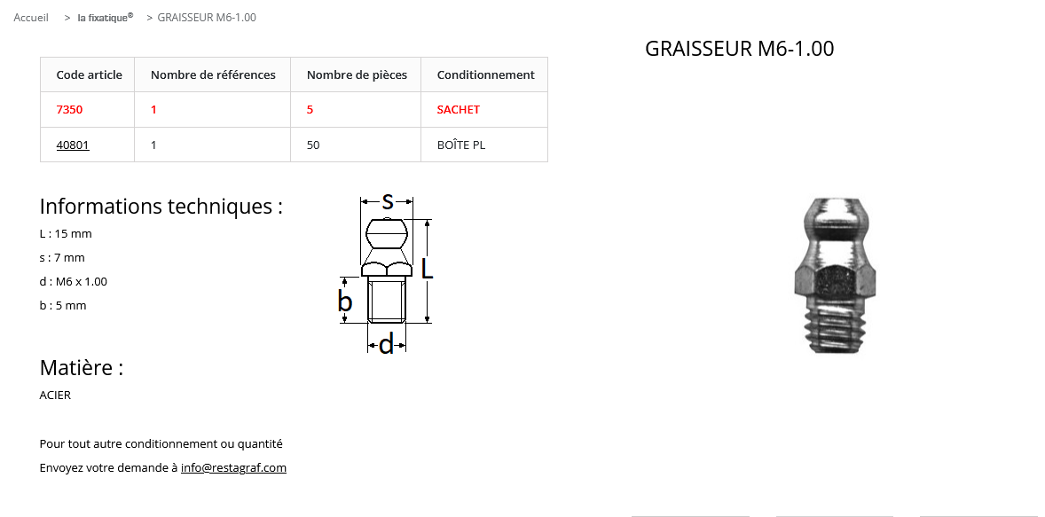quantité de GRAISSEUR METRIQUE DROIT M6 x 1 (x5pcs)
