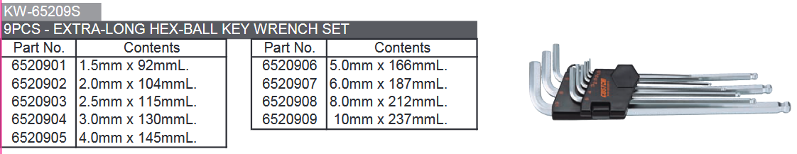 JEU DE CLES ALLEN EXTRA LONGUES 6 PANS/TETES SPHERIQUES (9pcs)