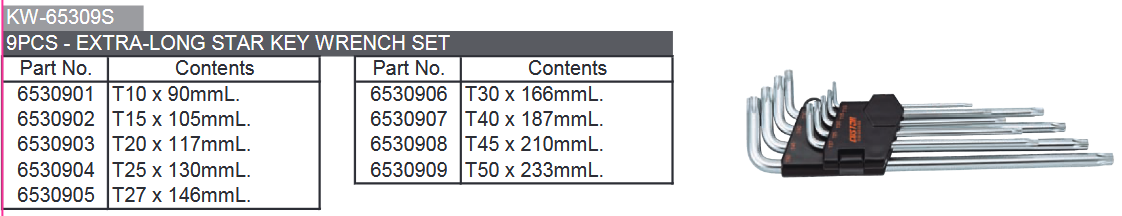 KIT CLES TORX EXTRA LONGUES T10 à T50 (9pcs)