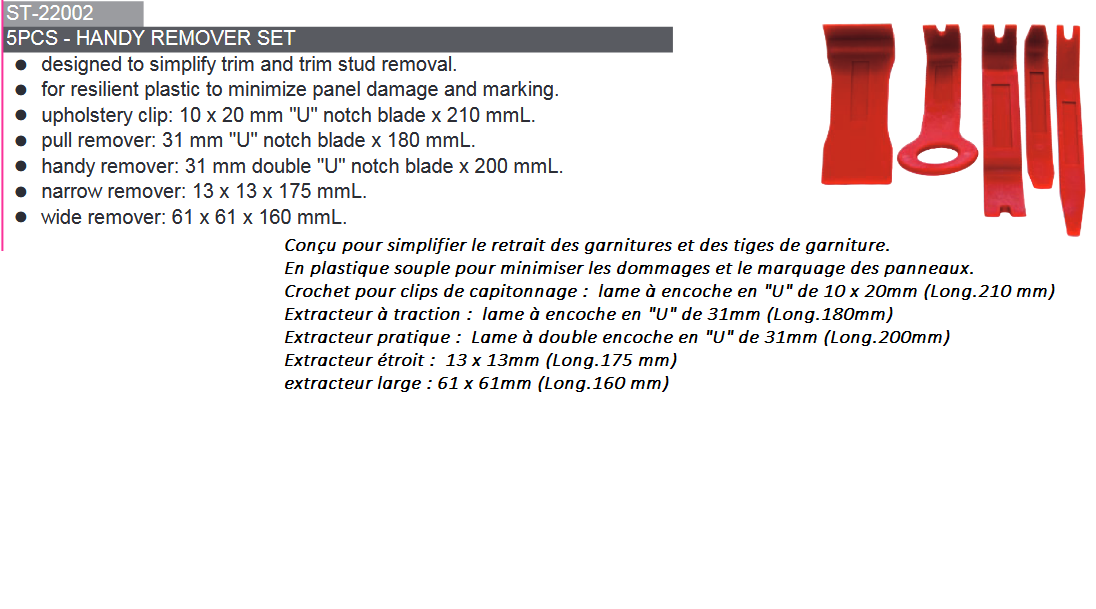 KIT OUTILS EXTRACTION DE PANNEAUX DE CARROSSERIE CAPITIONNAGE (5pcs)
