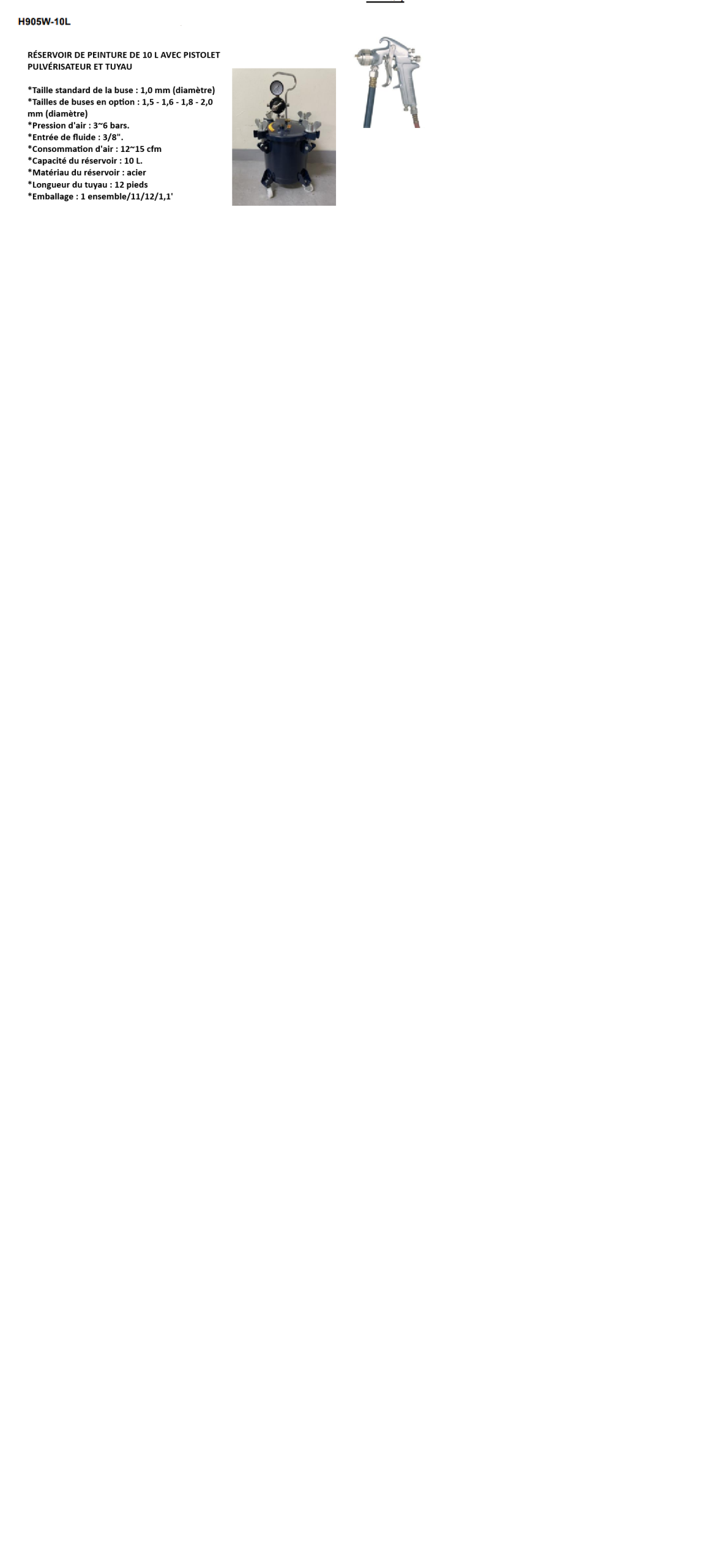 RESERVOIR PEINTURE 10L + PISTOLET + TUYAU