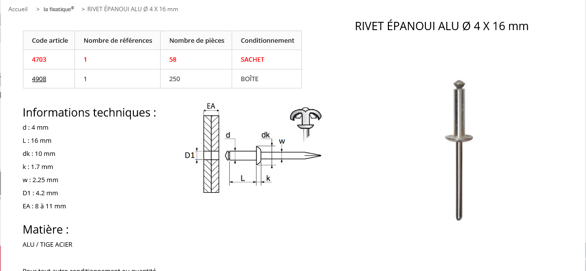 quantité de RIVET 4x16 (sachet de 58 pcs)