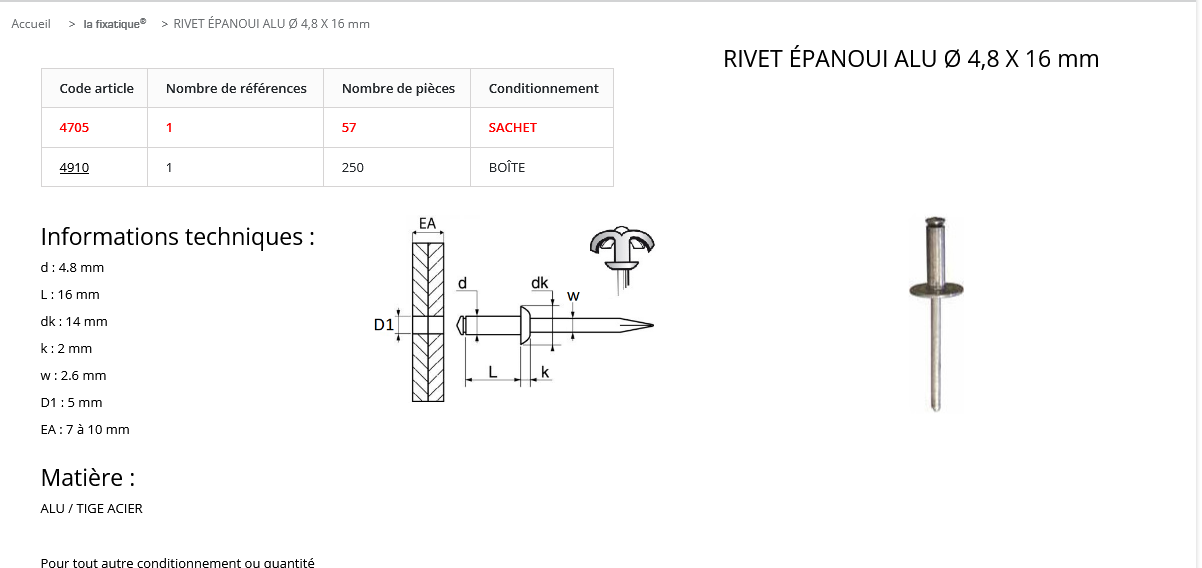 RIVET EPANOUI 4.8X20 (sachet de 48 pcs)