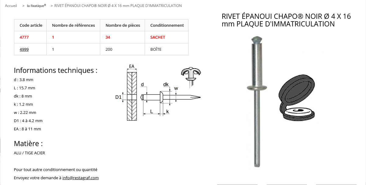 quantité de RIVET EPANOUI 4.X16 NOIR (sachet de 34 pcs)