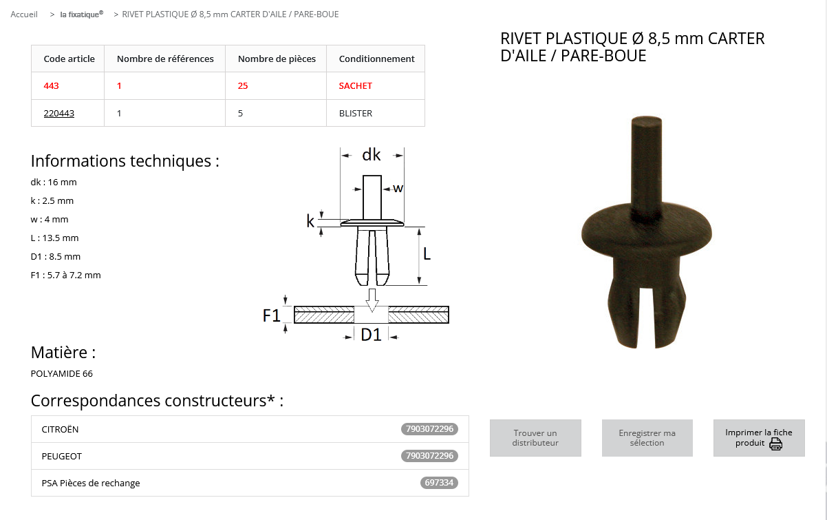 quantité de RIVET PLASTIQUE (8,5) (sachet de 25 pcs)