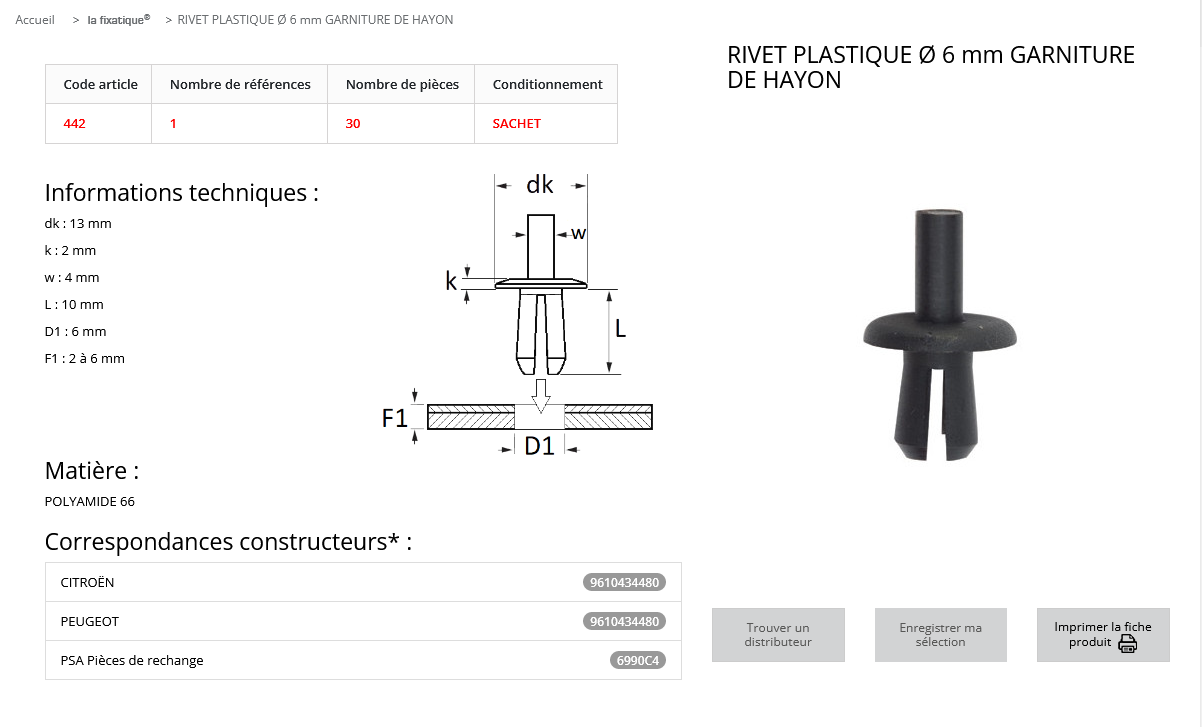 quantité de RIVET PLASTIQUE (D6) (sachet de 30 pcs)