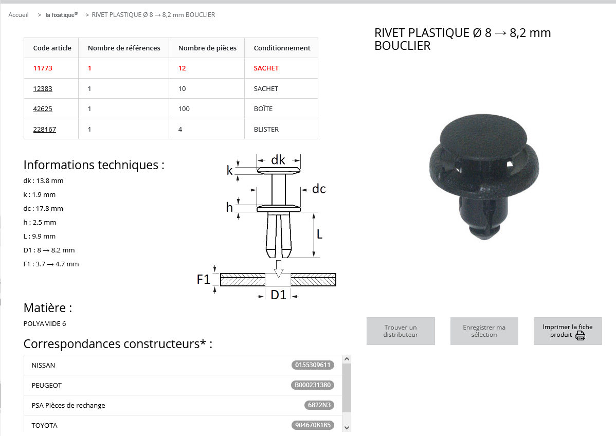 RIVET PLASTIQUE Ø 8 – 8,2 mm (sachet de 12 pcs)