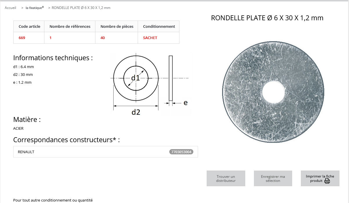 quantité de RONDELLE PLATE 6X30 (sachet de 40 pcs)