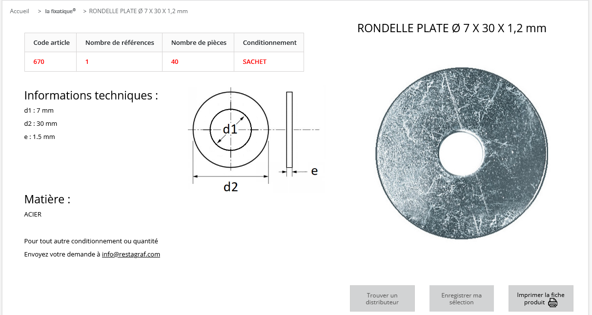 quantité de RONDELLE PLATE 7X30 (sachet de 40 pcs)