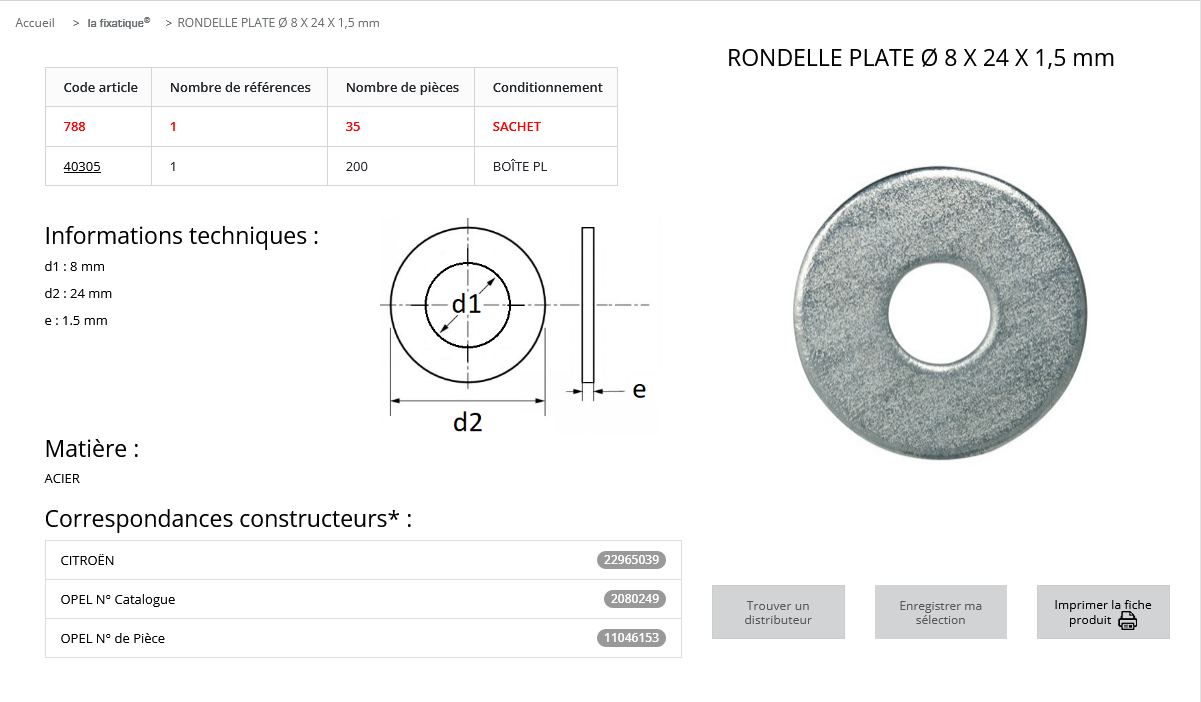 quantité de RONDELLE PLATE 8X24 (sachet de 35 pcs)