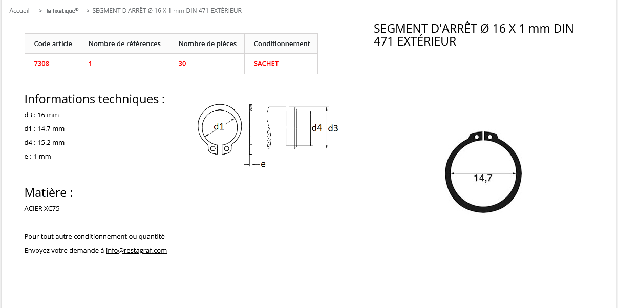 SEGMENT ARRET EXT. 16X1 (sachet de 30 pcs)
