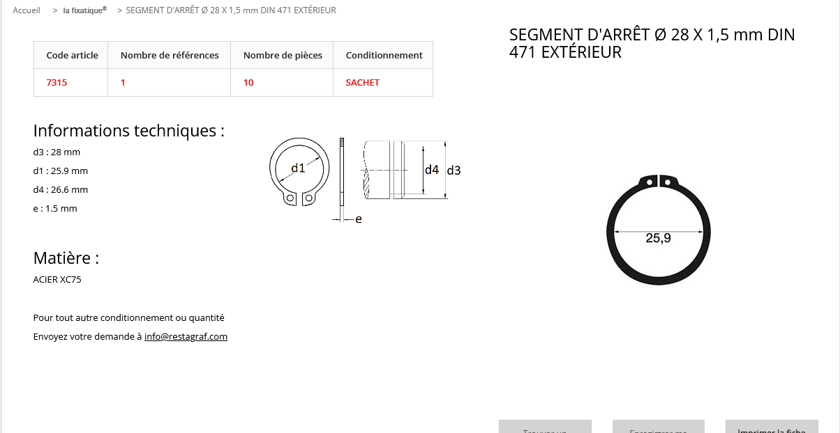 SEGMENT ARRET EXT. 28X1.5 (sachet de 10 pcs)