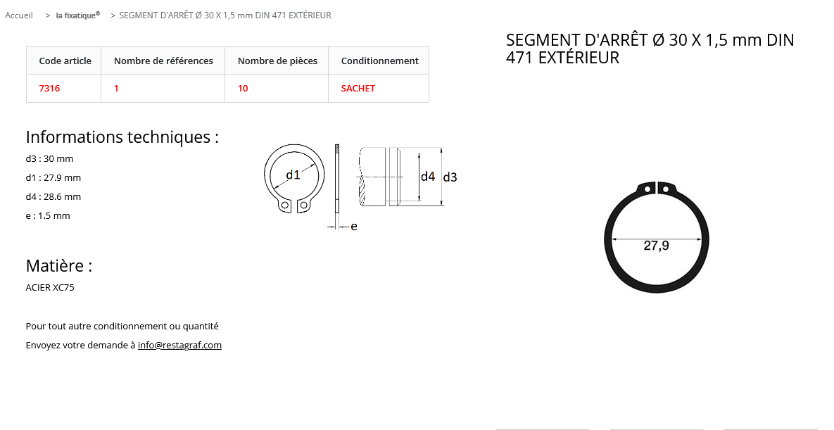 quantité de SEGMENT ARRET EXT. 30X1.5 (sachet de 10 pcs)