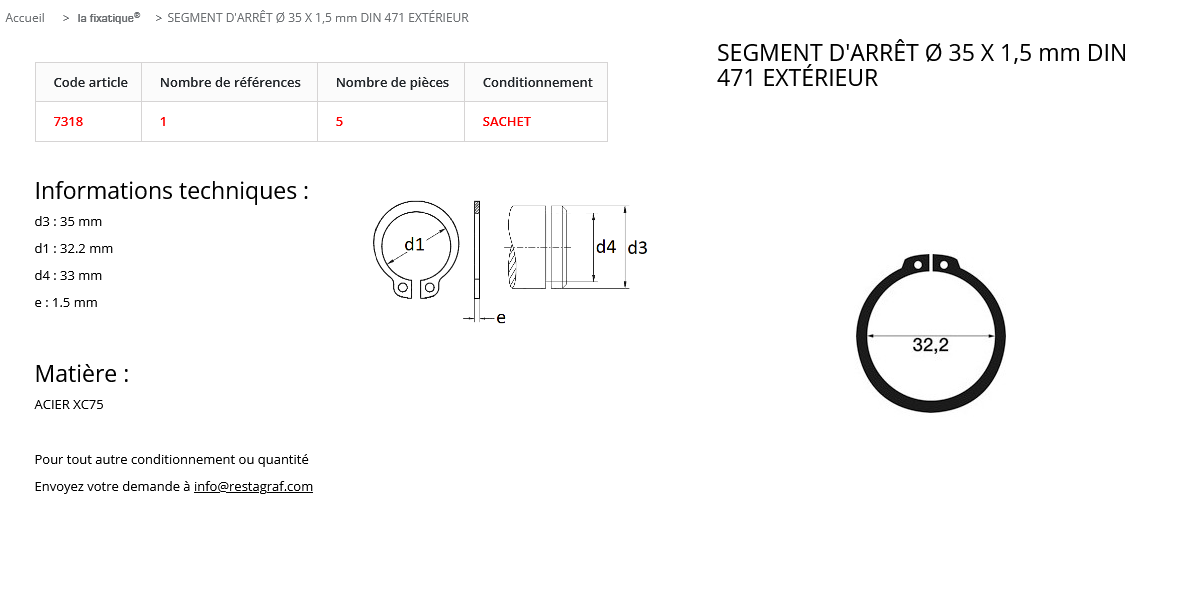 quantité de SEGMENT ARRET EXT. 35X1.5 (sachet de 5 pcs)
