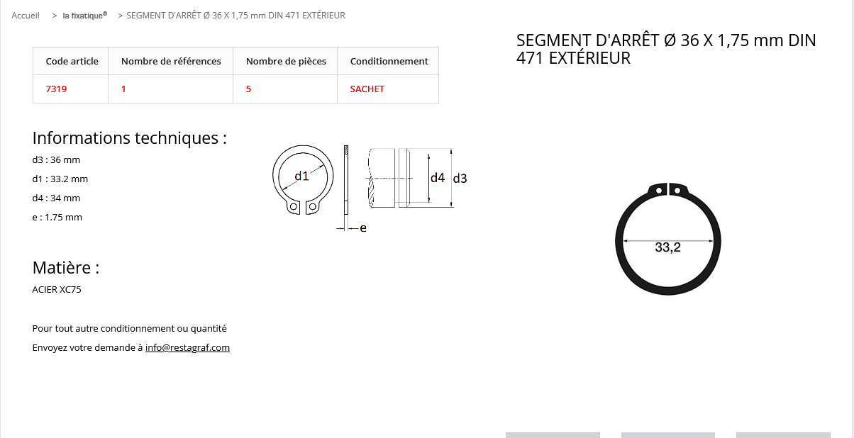 SEGMENT ARRET EXT. 36X1.75 (sachet de 5 pcs)