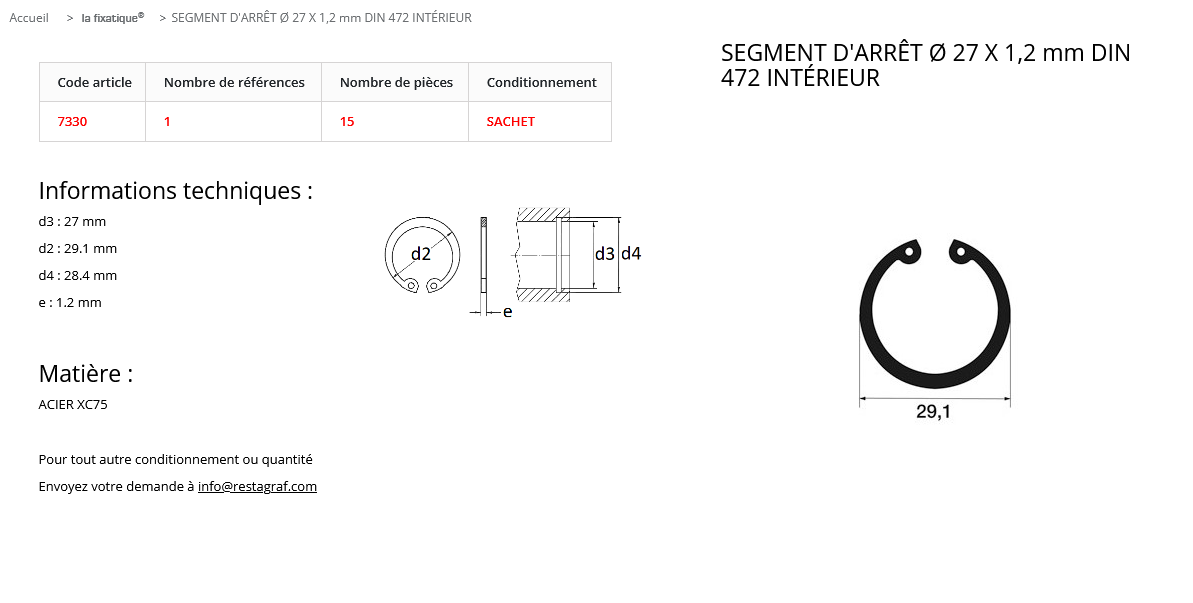 quantité de SEGMENT ARRET INT. 27X1.2 (sachet de 15 pcs)